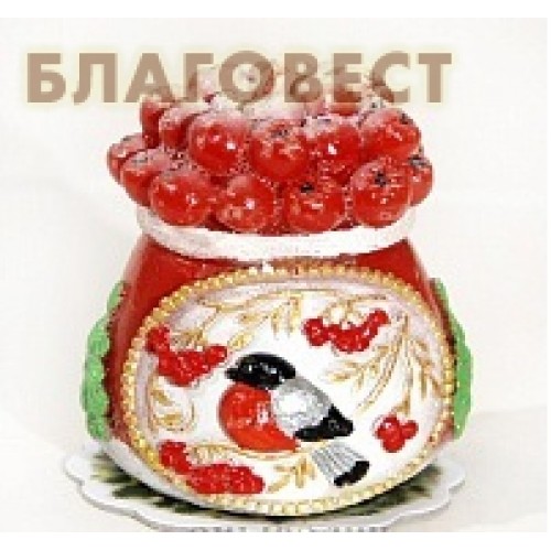 Декоративная рождественская свеча «Кувшинчик со снегирем» выполнена из парафина.