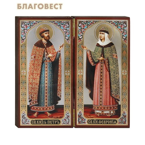 Складень двойной ростовой Святые благоверные Петр и Феврония. Размер 125*10*125мм