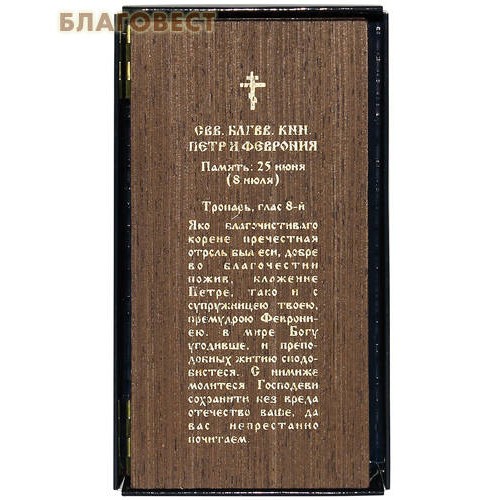 Петр и Феврония (в иночестве Давид и Ефросиния) – православные покровители семьи. Поэтичное и поучительное повествование о супружеской любви и их верности с древних времен считается примером идеального христианского брака. Благоверным Петру и Февронии Муромским молятся о семейном благополучии, о счастье в браке, о даровании детей.