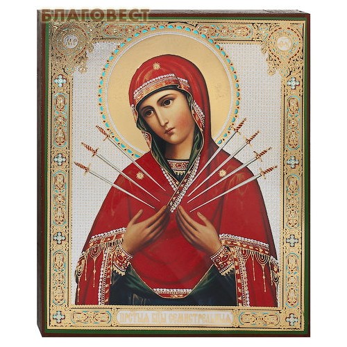 Икона Пресвятой Богородицы «Семистрельная» издревле считалась одной из самых чудотворных на Руси. Богородице «Семистрельной» всегда отводилось особое место в иконостасе. Божья Матерь изображена на образе одна, без Богомладенца, а Ее грудь пронзает семь мечей, что символизирует муки и печаль Богородицы в земной жизни. Именно икона Богородицы «Семистрельная» способна защитить дом и семью от врагов и недоброжелателей.