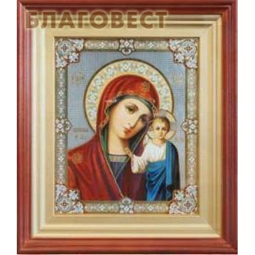 Икона «Пресвятая Богородица Казанская» изображает Матерь Божью с младенцем Иисусом. Лики их не соприкасаются, голова Богоматери наклонена к младенцу. Иисус Христос смотрит прямо. Правая рука сложена в благословляющем жесте. По иконографическим признакам икона относится к типу «Одигитрия» (путеводительница). Перед образом молятся о победе над врагом, заступничестве. Ею благословляют на брак.