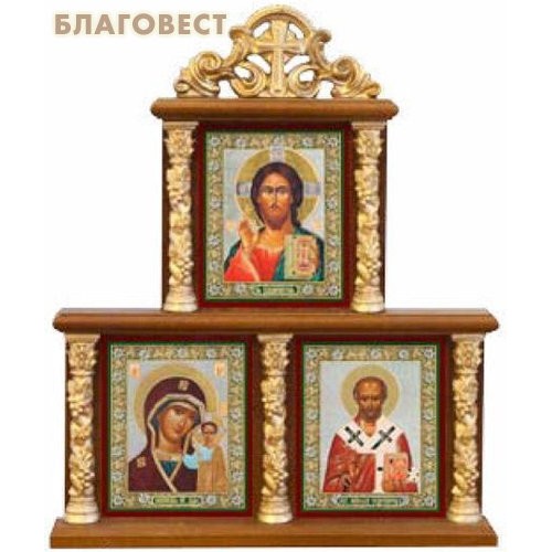 В верхней части иконостаса расположена икона Спасителя «Вседержитель». В нижнем левом углу находится икона «Казанская Богоматерь». В углу по правую сторону от иконы Иисуса Христа находится икона «Святой Николай Чудотворец».