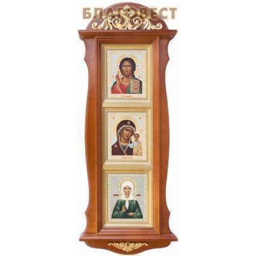Киотом называется специально устроенный шкафчик, в котором помещаются особо чтимые иконы. Он может быть закрытым под стеклом либо открытым. Аккуратный, украшенный орнаментом киот из натурального дерева придаст домашнему иконостасу особое благолепие.