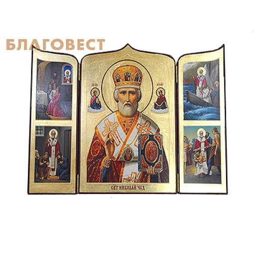 Складень "Святитель Николай чудовторец, с житием", ручная работа