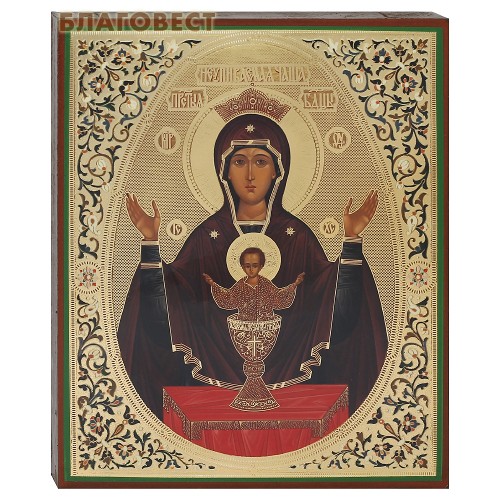 Икона Пресвятой Богородицы «Неупиваемая Чаша» известна с 1878 года и почитается как чудотворная в Русской православной церкви. Дева Мария изображена в молитвенной позе с воздетыми руками, Младенец Христос — стоящим в чаше и благословляющий обеими руками.