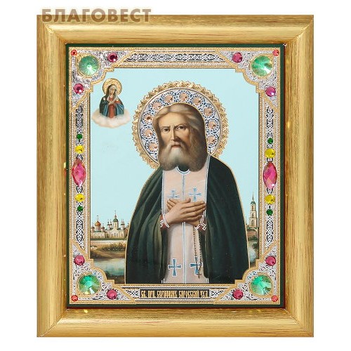 Икона Серафим Саровский, св. прп. в багете со стразами