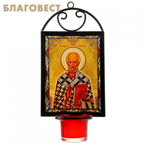 Икона "Святитель Николай Чудотворец" с лампадой, на подвесе