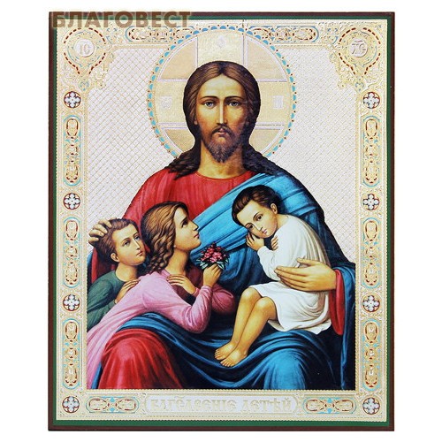 Икона изображает евангельское событие. Евангелие от Марка 10:13-16. Приносили к Нему детей, чтобы Он прикоснулся к ним; ученики же не допускали приносящих. Увидев то, Иисус вознегодовал и сказал им: пустите детей приходить ко Мне и не препятствуйте им, ибо таковых есть Царствие Божие. Истинно говорю вам: кто не примет Царствия Божия, как дитя, тот не войдёт в него. И, обняв их, возложил руки на них и благословил их. Икона «Благословение детей» как бы от Самого Христа дает это благословение не только самим детям, но и педагогам, и родителям, которые воспитывают и обучают их.