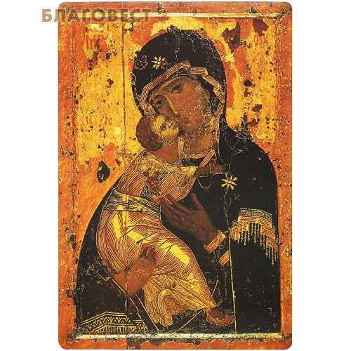 Икона Божией Матери "Владимирская". Полиграфия, дерево, лак