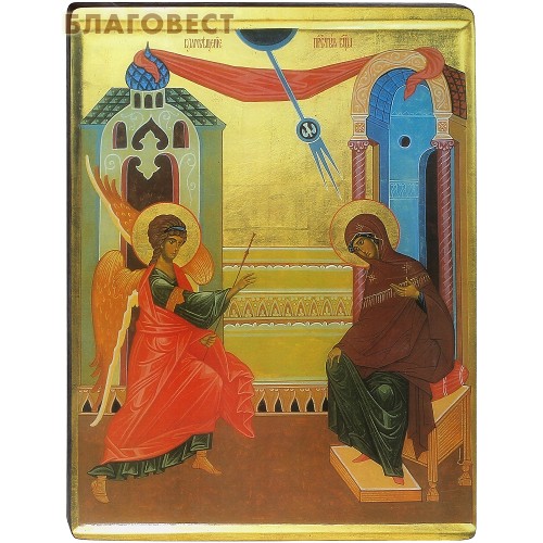 Икона Благовещение Пресвятой Богородицы. Полиграфия, дерево, лак