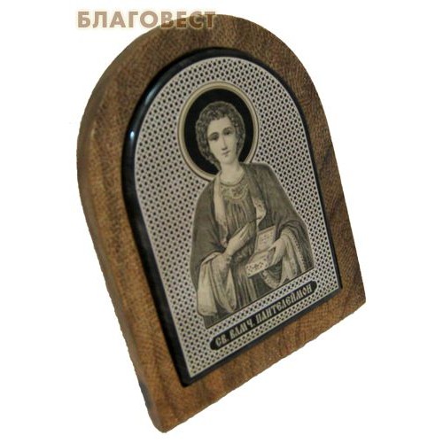В иконографии Пантелеймон обычно изображается как безбородый юноша, держащим в одной руке коробочку с целительными снадобьями, а в другой – или ланцет, или мученический крест.