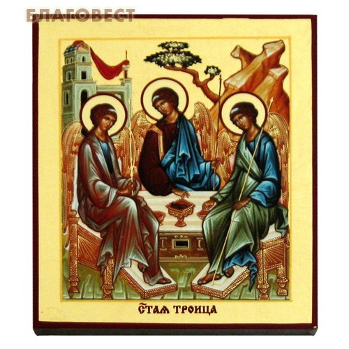 Сюжет иконы Святой Троицы восходит к ветхозаветном рассказу из Книги Бытия (18: 1-15) о явлении Аврааму под Мамврийским дубом трех Ангелов в образе путников. Ангелы возвестили престарелому Аврааму о грядущем чудесном рождении сына Исааке и происхождении от него «народа великого и сильного», в котором «благословятся… все народы земли». Согласно христианской традиции, в явлении трех Ангелов Аврааму проявилось первое откровение человеку Святой Троицы – единосущного и триипостасного Бога.