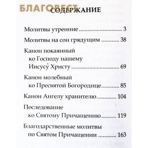 Православный молитвослов крупным шрифтом — это специальное издание для слабовидящих. В нём есть весь комплекс самых необходимых для православного христианина молитв. Каноны — покаянный Господу Иисусу Христу, молебный ко Пресвятой Богородице и Ангелу-Хранителю — раздельные.