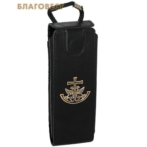 Футляр для очков выполнен с тиснением орнамента-символа на лицевой стороне изделия, изготовлен из натуральной матовой кожи черного цвета. Закрывается на застежку магнит, также меняется длина шнура для ношения изделия на груди. Внутренняя часть футляра отделана бархатом.
