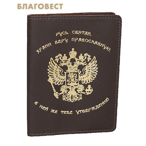 Обложка "Герб Российской Федерации" для водительского удостоверения. Тиснение на коже, цвет темно-коричневый