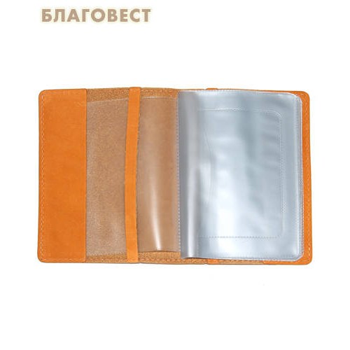 Обложка для водительского удостоверения изготовлена из натуральной матовой кожи рыжего цвета.
