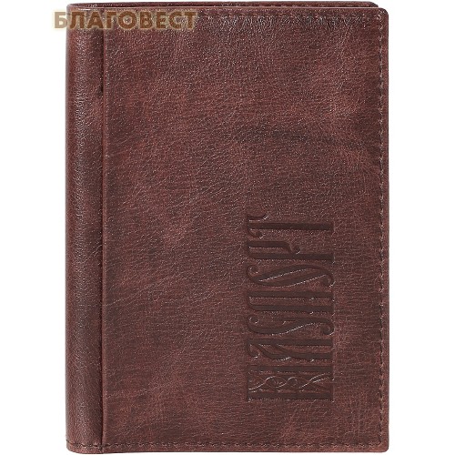 Обложка для паспорта с молитвой. Кожа, цвет темно-коричневый