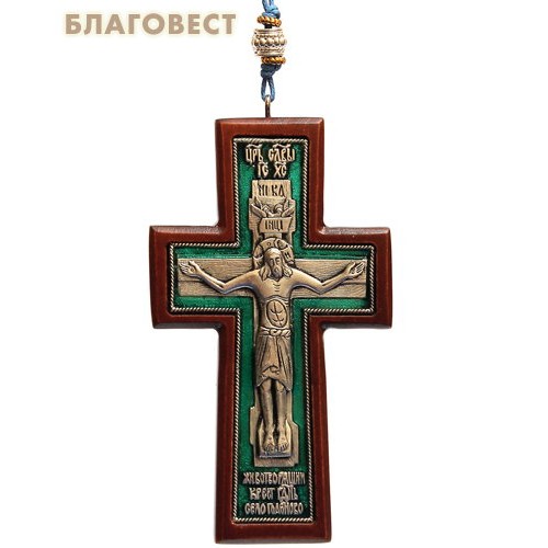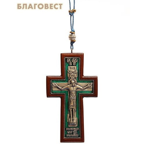 Сверху к кресту прикреплен прочный шнур, с помощью которого изделие и можно повесить на лобовом стекле автомобиля.