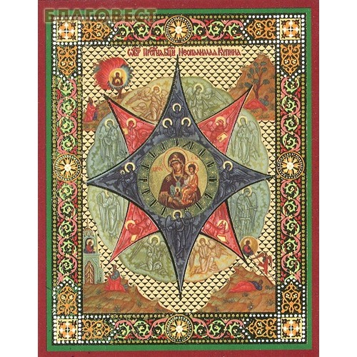 Неопалимая купина – объятый пламенем, но не сгоравший куст, некогда виденный пророком Моисеем, - является одним из ветхозаветных праобразов Богоматери и знаменует собою непорочное зачатие Христа от Духа Святого: быв Матерью, Богородица осталась Девою и в рождестве и после рождества. В церковных песнопениях мы слышим: «Якоже купина не сгараше опаляема, тако, Деве, родила еси»; «Радуйся, Купино неопалимая».