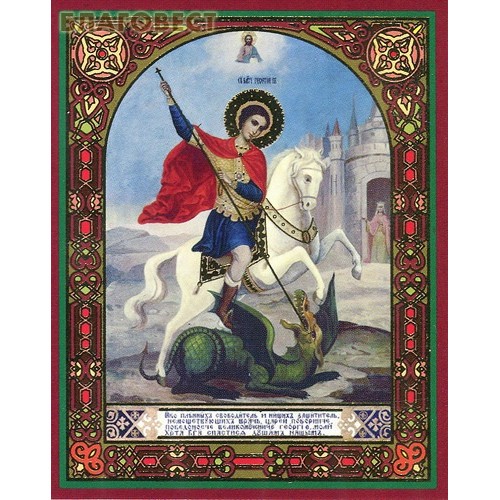 Тропарь: Яко пленных освободитель и нищих защититель, немоствующих врач, царей поборниче, Победоносче великомучениче Георгие, моли Христа Бога спастися душам нашим.