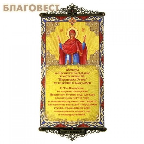 Икона-хоругвь с молитвой на подвесах "Молитва ко Пресвятой Богородице от бедствий и злых людей"
