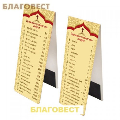 Закладка для книг «Церковно-славянские цифры» предназначена для надежного зажима книжного листа. Обе части закладки сделаны из плотного картона. Это помогает им хорошо держать форму и не расслаиваться. Внизу каждой части закладки прикреплен магнит. С его помощью закладка для книг «Церковно-славянские цифры» хорошо держит нужную страницу и не дает закладке выпасть из книги.