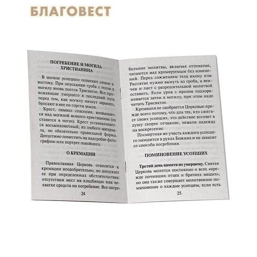 В данной брошюре рассказывается о православном обряде погребения, о том, как молиться за усопших православных христиан, днях особого поминовения умерших, поминальной трапезе; о том, как по-христиански подготовиться к смерти. Приводится чин литии, совершаемый мирянином об усопшем.