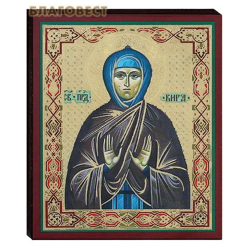 Преподобная Кира Берийская вместе со своей сестрой Мариной жила в IV веке в городе Берии Малой Азии. Девушки выросли в богатой семье, но покинули свой дом, став взрослыми. Они решили совершить подвиг во имя Бога. В уединении, в посте и молитве они провели 40 лет, всю оставшуюся жизнь. Все это время сестры почти не разговаривали друг с другом. Они настолько были едины в своем устремлении, что слова были им не нужны.
