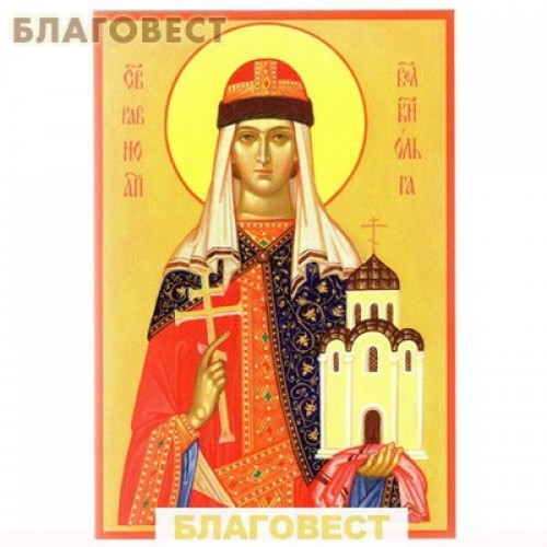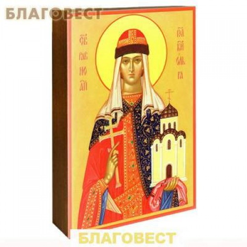 Икона Ольги, святой равноапостольной княгини, выполнена полиграфическим способом с последующим переносом изображения на деревянный планшет.