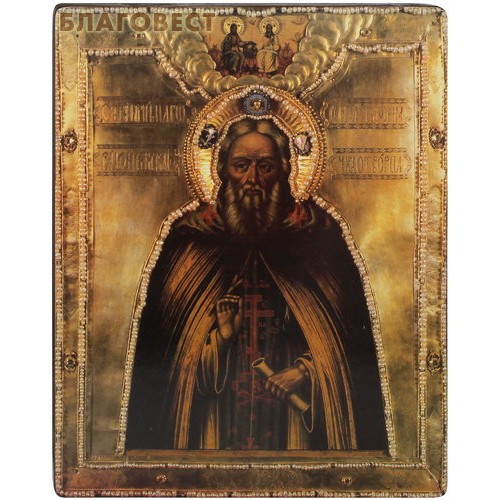 Икона Святой преподобный Сергий Радонежский. Полиграфия, дерево, лак