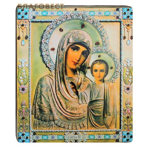 Икона Божией Матери "Казанская". Полиграфия, дерево, лак