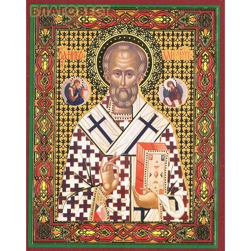 Святитель Николай родился в III веке в городе Патаре в семье богатых и благочестивых родителей. Благодать божья проявляла на нем знамения с самого рождения. Будучи отроком, он обнаружил склонность к воздержанию, часто посещал храмы божьи и с любовью изучал Священное Писание под руководством своего дяди Николая, епископа Патарского. По просьбе дяди был отдан на служение Господу и был впоследствии поставлен пресвитером. В этом сане он посетил Иерусалим и в пути своими молитвами дважды укротил бурю на море и спас людей. По особому внушению Божию он переселился в Миры и вскоре за святую жизнь был избран епископом. Святитель явился образцом веры, кротости, милосердия и воздержания.
