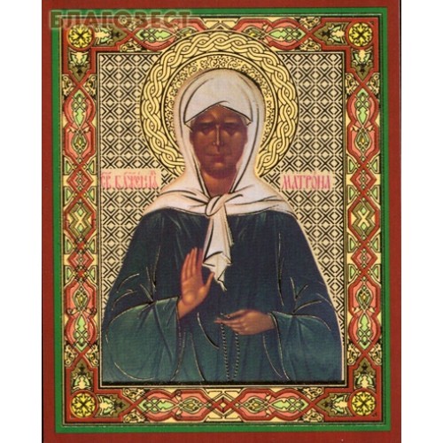 Блаженная Матрона, икона которой хранится в монастыре Блаженной Матроны Московской, родилась слепой, но была любима родителями. Еще до рождения Бог избрал ее в подвижничество. При крещении Матроны произошло чудо, которое явилось в виде столба благоухающего дыма, окружившего ребенка после помещения ее в купель. Отец Василий, который считался праведником, был крайне удивлен, предрекши Матроне святость. Также отец Василий указал на то, что Блаженная Матрона предскажет его кончину, что и случилось впоследствии.