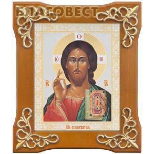 Икона обрамлена деревянной рамкой, украшенной орнаментом.