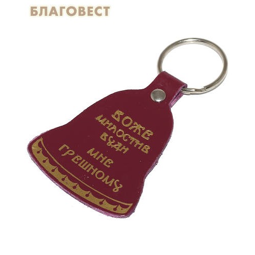 Брелок изготовлен из натуральной кожи вишневого цвета, с металлизированным тиснением.