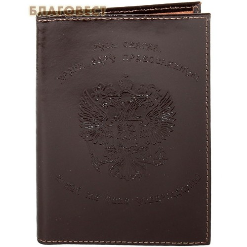 Обложка "Герб Российской Федерации" для водительского удостоверения. Слепое тиснение на коже, цвет коричневый