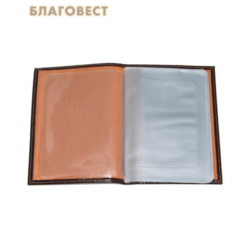 Обложка для водительского удостоверения изготовлена из натуральной глянцевой кожи темно-коричневого цвета.