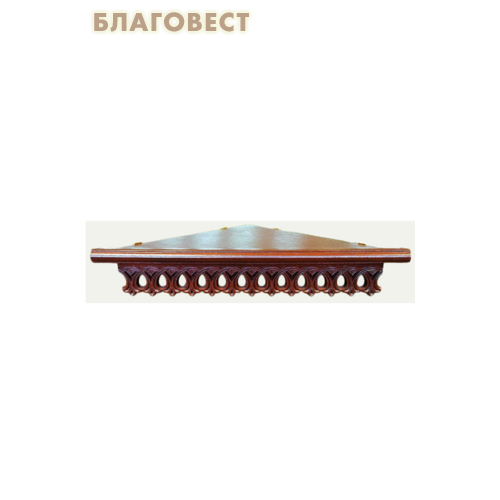 Одноярусная полка для икон изготовлена из натурального дерева, украшена ажурной вставкой по нижнему краю. Данное изделие великолепно дополнит интерьер в любой комнате и просто незаменимо при создании небольшого домашнего иконостаса, в «красном» углу Вашего дома. Угловая форма удобна для расположения икон и лампады на небольшом пространстве.