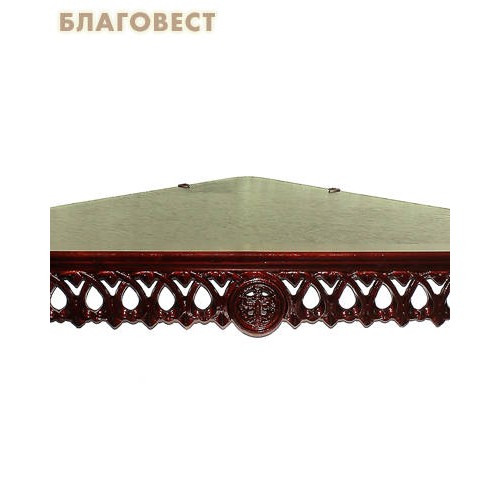 Одноярусная полка для икон великолепно подойдет и дополнит любой интерьер и практически незаменима для создания небольшого иконостаса в "красном" углу комнаты. Угловая форма удобна для расположения нескольких икон по периметру изделия, лампады и подсвечника на небольшом пространстве.