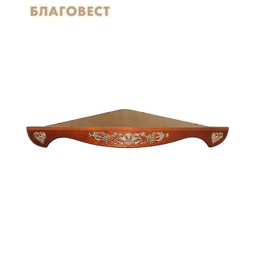 Данное изделие великолепно дополнит интерьер в любой комнате и просто незаменимо при создании небольшого домашнего иконостаса, в «красном» углу Вашего дома. Угловая форма удобна для расположения икон и лампады на небольшом пространстве.