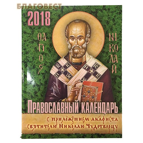 Православный календарь с приложением акафиста Свт. Николаю Чудотворцу, на 2018 год
