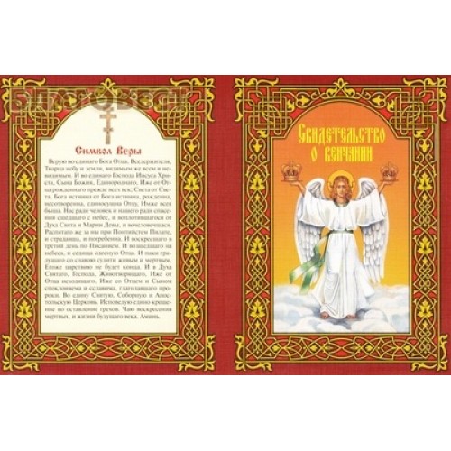 Свидетельство о свершении Таинства Венчания с молитвой Символ Веры.
