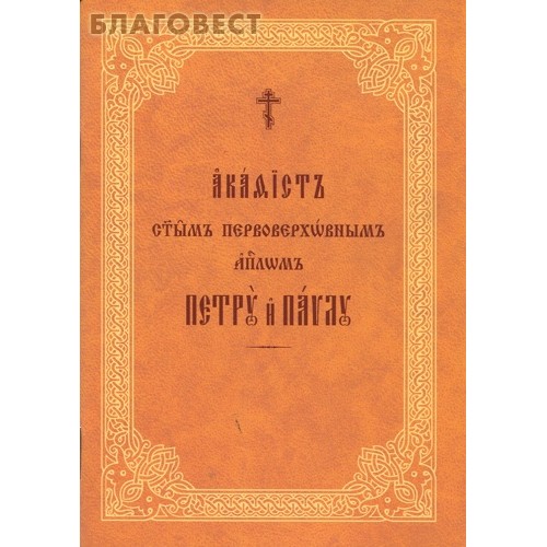 Простое и практичное издание акафиста святым первоверховным Петру и Павлу, небольшой брошюрой, на хорошей, плотной бумаге. Текст сопровождается репродукциями икон святых первоверховных Петра и Павла. Шрифт — церковно-славянский, крупный.