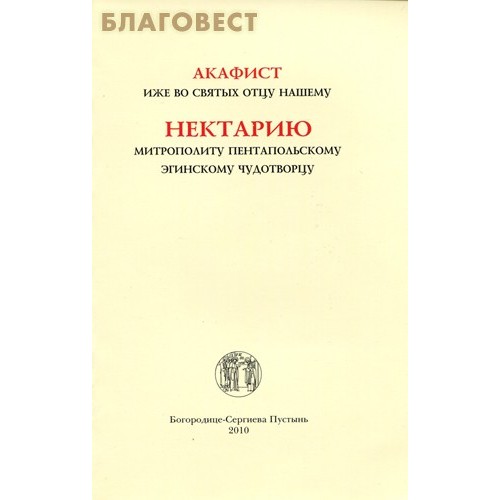 Акафист иже во святых отцу нашему Нектарию, митрополиту Пентапольскому, Эгинскому чудотворцу. Издание подготовлено братией Богородице-Сергиевой Пустыни.