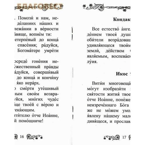 Предлагаем вашему вниманию небольшую карманного формата книгу, выпущенную издательством «Благовест» и содержащую акафист любимому и почитаемому многими православными людьми святителю Иоанну Шанхайскому. Русской Православной Церковью он был канонизирован не так уж давно – в 2008 году, однако многие православные уже давно просили святителя о помощи и неизменно получали просимое. Если и вы будете молиться святому Иоанну, читать ему молитвы и акафист, то тоже не останетесь без его помощи, так как он и при своей земной жизни и сейчас много помогает в болезнях и скорбях, и многих других бедах, с которыми к нему обращаются.