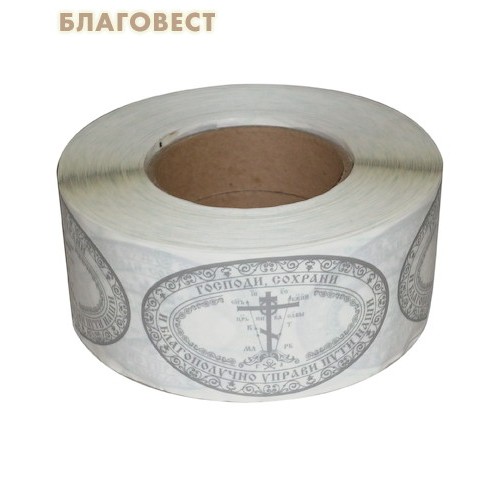 На наклейке для автомобиля изображен восьмиконечный Животворящий крест Господень, воздвигнутый на Голгофе, и надпись: «Господи сохрани и благополучно управи пути наши».