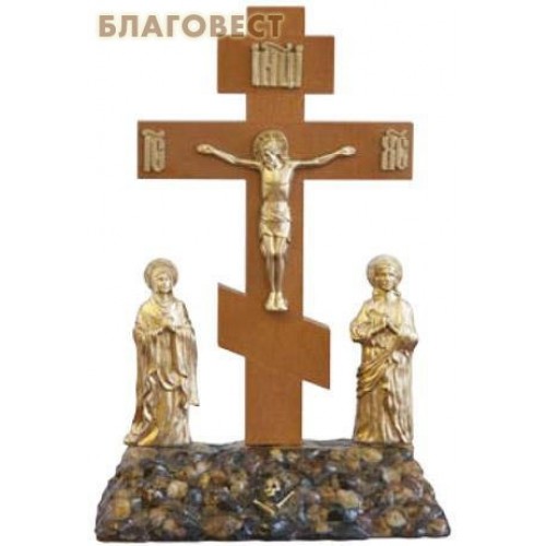Крест Голгофа с предстоящими является небольшой репродукцией одного из главных символов христианства. Подобные распятия часто устанавливают в центральной части церквей и храмов. Форма креста является традиционной для православного христианства. Верхняя перекладина и буквы ИНЦИ символизируют табличку, на которой был написан приговор Иисуса - Иисус Назарянин Царь Иудейский, а нижняя является перекладиной для ног Спасителя.