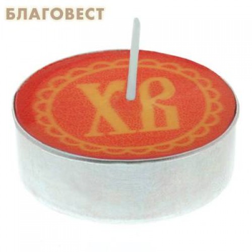 Пасхальная свеча "Христос Воскресе" выполнена из парафина и размещена на яркой открытке с пасхальным мотивом.