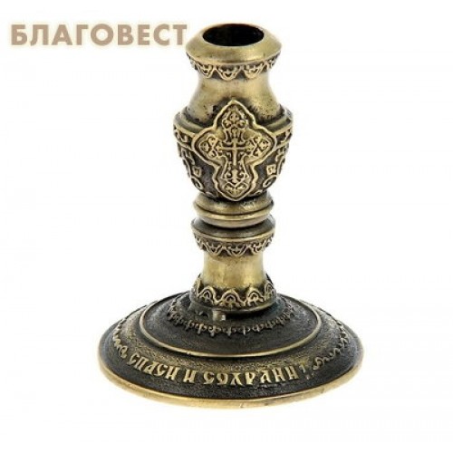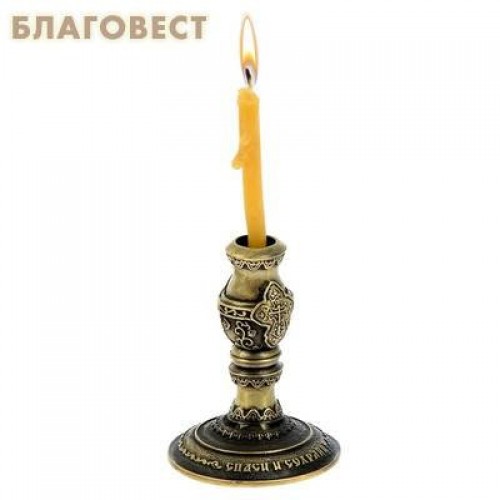 Подсвечник "Спаси и сохрани" — прекрасный выбор для тех, кто хочет сделать запоминающийся презент родным и близким. Поможет создать атмосферу праздника. Такой подарок запомнится надолго. Изделие изготовлено из металла бронзового цвета.