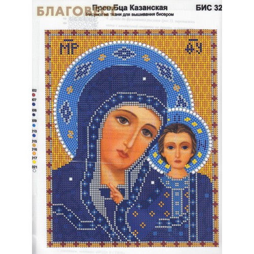 Рисунок на ткани для вышивания бисером Пресвятая Богородица "Казанская". Размер 190*240мм